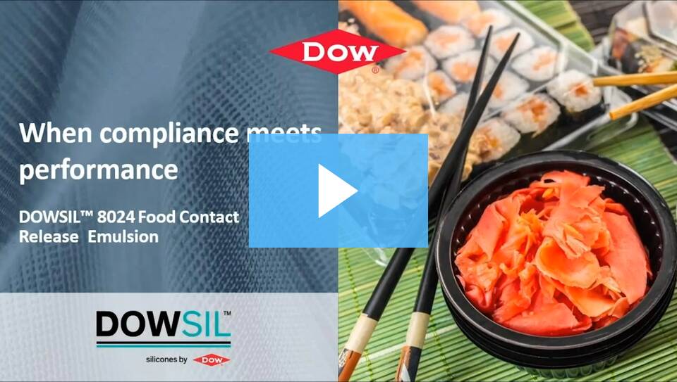 Це ключові переваги нашої останньої емульсії DOWSIL™ 8024, що контактує з харчовими продуктами, яку можна використовувати для прямого та непрямого контакту з харчовими продуктами. Наша нова емульсія пропонує унікальний набір ключових характеристик, включаючи низькі рівні використання, високу ефективність вивільнення, збереження мастила на поверхні, високу термостабільність, низький запах і низьку летючість у поєднанні з дотриманням основних глобальних і регіональних правил контакту з харчовими продуктами та сертифікації.